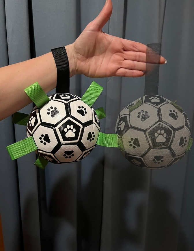 We guarantee you that your pup will LOVE Chewie. At first glance, it looks like a regular soccer ball. However, because of sturdy nylon straps and a special corset mesh inside, it is EXTREMELY durable and hard to tear apart. Your dog's attention will be focused mostly on the straps and not on the ball itself, making it a long-lasting toy. Most of our customers say they were surprised that their dogs couldnât bite into Chewie easily and render it just another worthless piece of cloth.