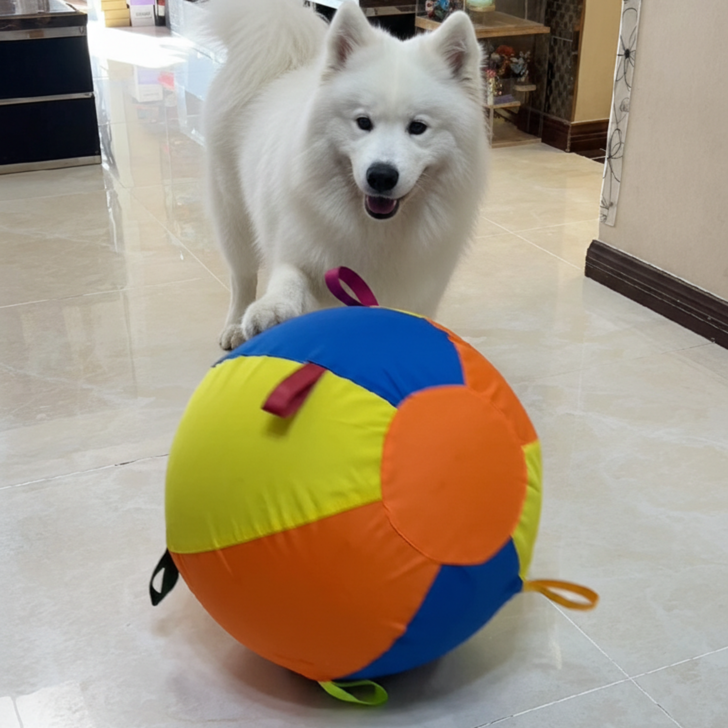 Let’s face it — picking the right toy for our dogs can be a real challenge. Most of them get destroyed in minutes and others are just getting ignored by our pups. We feel you, that's why we created the Viral Giant Ball. It's no secret that dogs are obsessed with balls. And this one is upgraded to the max: it's big, bright and has lots of tags on it that dogs love to chew on. Because it’s too big to bite, the ball stays intact while your pup goes wild chasing, pushing, and tossing it. It’s not just a toy; it’s finally a fair match for your dog’s energy.