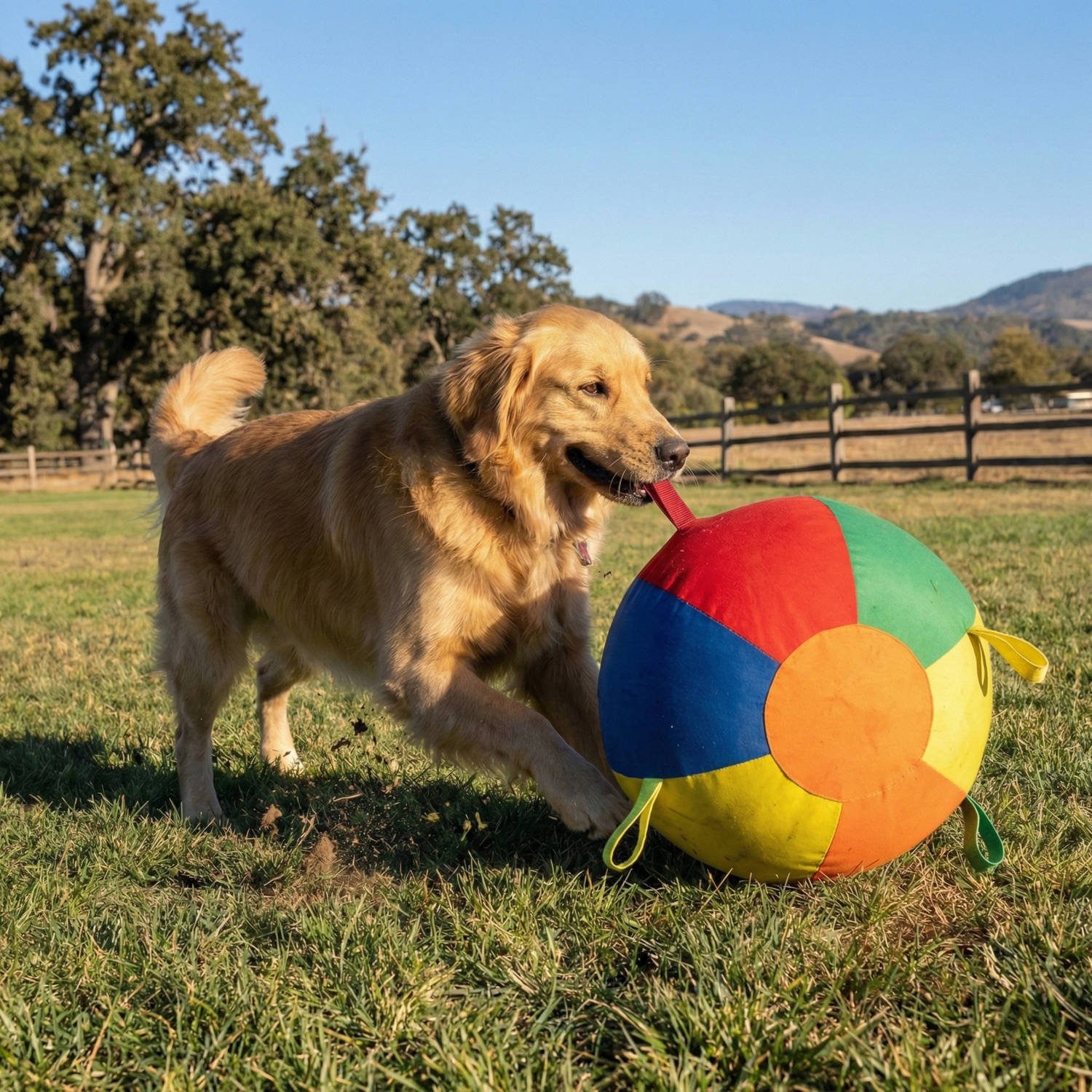 Setting up the Giant Ball is super easy - you just pump it up (pump included), introduce it to your dog and let the fun begin! Your pup will quickly figure it out and play with the Ball until they are completely worn out. A super long nap afterwards is no surprise. Our Giant Ball is great for both indoor and outdoor play, it's extremely durable and perfect for hyperactive dogs to channel all that excess energy.