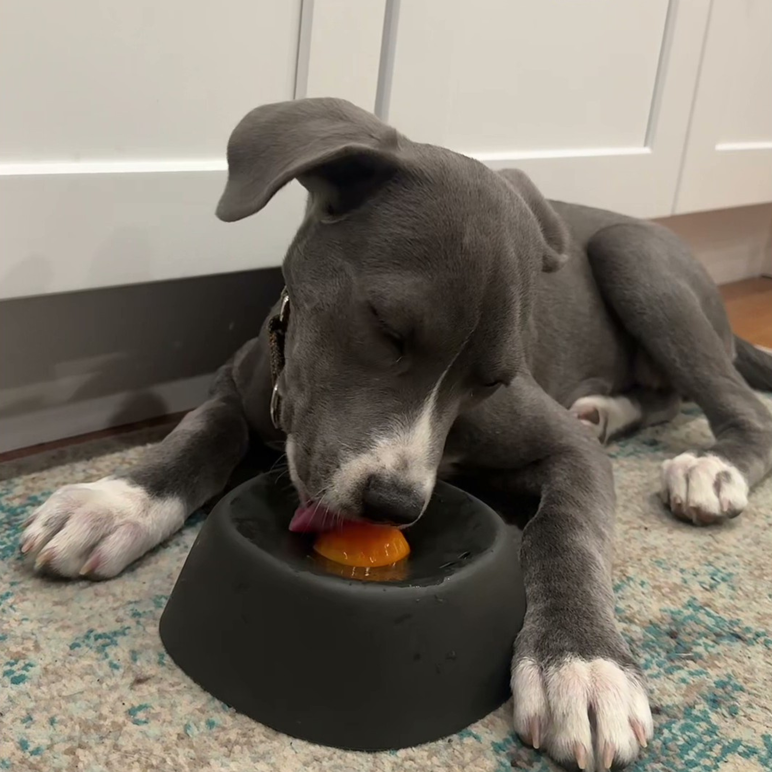 The Viral Licking Bowl is super easy to set up - you just pour the liquid treat in, place the lid on the ball and watch your dog spend a good 30-60 min just licking away and having the time of their life. No mess on your floor or carpet, as the Bowl is slip-resistant and the strong bottom suction keeps it in place. Plus, licking is a natural way for dogs to self-soothe - it makes them feel calmer and more relaxed. It’s a simple enrichment moment that turns snack time into a soothing, stress-reducing routine.
